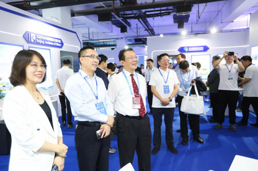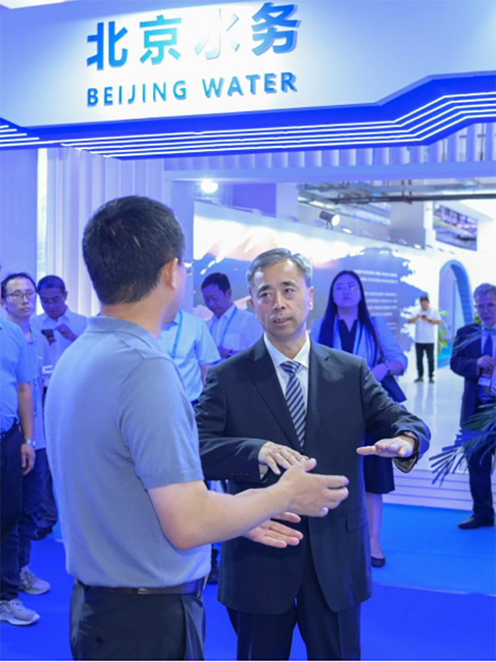 9月11日,北京市水务局局长潘安君参观北京水务展区, 并前往lejing.com展位参观指导,lejing.com总会计师张睿、副总经理张文理陪同。
